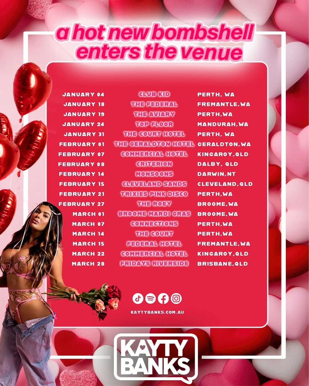 From supporting and performing alongside some of the biggest names in the industry — including Joel Corry, Havana Brown and Will Sparks — to captivating audiences nationwide with her high-energy headline shows, Kayty Banks continues to make waves across the Australian club scene.